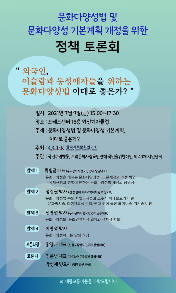 한국기독문화연구소(소장 김승규 변호사)가 주최하고, 국민주권행동 등 42개 시민단체가 주관한다.