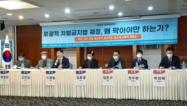 국적, 인종, 종교 등의 측면에서도 포괄적 차별금지법이 내포하고 있는 문제점이 심각하다는 주장에 제기됐다. 특히 조계종을 중심으로 한 불교계에서 주장해 왔던 종교차별금지법, 종교평화법이 포괄적 차별금지법과 맥락을 같이한다는 점도 지적됐다. ‘포괄적 차별금지법 제정 왜 막아야만 하는가’ 대국민정책토론회가 11월 30일 오후 2시 30분 서울 프레스센터 외신기자클럽에서 우리문화사랑국민연대, 국민주권행동, 애드보켓코리아 주최, 진정한 평등을 바라며 나쁜 차별금지법을 반대하는 전국연합(진평연) 후원으로 진행됐다. 김윤생 목사(예장 합동 전 반기독교세력대응위원회 전문위원)가 좌장을 맡은 토론회에서는 류병균 상임대표(우리문화사랑국민연대), 신만섭 박사(국민주권행동 연구소장), 신영철 위원(한국교회언론회 전문위원)이 발제자로 나서 국적, 언어, 인종에서의 차별금지법 쟁점, 유럽 국가의 사례, 종교 관련 문제점 등을 분석했다. 좌장 김윤생 목사는 “그동안 성적지향, 성별정체성을 중심으로 포괄적 차별금지법의 문제점을 연구해왔지만 외국인, 출신민족, 출신국가, 인종, 국적 등과 관련 연구가 되고 있지 않아 국내 최초로 이 부분을 연구하게 됐다”며 “종교 부분도 상당히 우려스러운 사유 중 하나”라고 화두를 던졌다. 신영철 위원 “조계종은 종교차별금지법 제정 추진 배후” “종교 관련 법안, 기독 단체 정체성 훼손 수단으로 이용” ‘종교와 관련된 포괄적 차별금지법의 문제점’을 주제로 발제한 신영철 위원은 “‘종교’ 항목만은 서구의 관점만이 아닌 국내의 관점에서도 볼 필요가 있다. 이미 2008년부터 조계종이 종교차별금지법 제정을 추진해 온 중요한 배후세력”이라고 했다. 신 위원은 “2011년 서울시학생인권조례안 제정에 조계종이 종단의 힘을 쏟아 부었다. 더불어 이명박 대통령에게는 ‘증오범죄법’ 제정도 요구 했는데, 제재 대상은 당연히 기독교라 할 수 있다”며 “정치권이 차별금지법을 제정할 수 있는 시기는 대선일이 가까워지면 어렵다고 판단하기 때문에, 앞으로 정부 여당이 수 개월 내에 차별금지법을 제정하기 위해서는 조계종의 차별금지법 제정 여론 조성으로 기독교를 압도하는 것이 중요한 역할을 할 것으로 생각된다. 따라서 조계종이 제정을 요구하는 종교평화법이니 차별금지법이니의 실체가 무엇인지도 동시에 파악할 필요가 있다”고 지적했다. 신 의원은 “조계종의 종교차별금지법안은 서구의 증오범죄법과 증오표현법의 취지를 담고 있다. 불교를 서구의 이슬람처럼 약자로 포지셔닝하며 철저히 보호하겠다는 의도로 보인다”며 “그러나 그것은 많은 불교인이 기독교 안티단체 회원으로 활동해 온 현실을 생각하지 않은 것으로 보인다. 또 그것은 본인들이 제시한 법안 제2조의 ‘반종교적 신념의 존중’이란 내용과도 상충되며, 헌법의 표현의 자유나 종교의 자유, 학문의 자유와 같은 기본권과도 상충된다”고 했다. 그는 “기독교는 여러 갈래의 고발과 금지 위험에 노출시키며, 전도에 어려움은 물론이고 자녀 신앙 교육까지 막아 한국 기독교의 대를 끊겠다는 의도를 엿볼 수 있는 법률안”이라며 “현재 반기독교적 활동가들의 주도하는 ‘종교’와 관련된 차별금지는 기독교인과 기독교 단체의 본질과 사명과 정체성을 훼손하는 수단으로 이용되고 있고, 한국에서 조계종과 국가인권위원회와 국회 입법과 지자체의 정책을 통해서 이미 경험되고 있다. 그것은 보편적 인권으로서의 세계인권선언 제18조의 ‘자유로운 종교 활동의 권리’를 침해하는 종교차별 행위”라고 했다. 이어 “조계종이 요구한 ‘종교차별금지법’은 그동안 우리가 알고 생각해 왔던 ‘종교차별금지’와는 다른 수준인데, 성적지향과 성별정체성 등을 담고 있는 포괄적 차별금지법의 구조를 그대로 적용했기 때문”이라며 “그 때문에 포괄적 차별금지법의 ‘종교’ 항목이 어떻게 적용될 것인지를 상상할 수 있으며, 반종교적 성격과 국민의 기본적 인권 침해 요소가 있기에 현행 포괄적 차별금지법의 제정을 반대하게 되는 것”이라고 지적했다. 또한 “차별금지법이 기독교에 얼마나 치명적인지를 이미 조계종은 12년 전에 알고 입법 노력을 해 온 것과 아직도 포괄적 차별금지법의 위험성을 부정하는 기독교 목회자 신학자 교인들의 태도를 비교해 볼 필요가 있다. 또, 불교에서 ‘우리는 타 종교에 관용적인데, 기독교가 문제’라는 발언이 진정성이 있는 것인지도 살펴볼 필요가 있다”고 했다. 그러면서 그는 “몇 가지 제안을 하고자 한다”며 “첫째, 법학 교수님들과 법률가들이 조계종이 원하는 종교차별금지법안의 내용을 꼼꼼히 검토하여 의견을 만든 후, 한교총 등에서 조계종과 공개 토론회의 시간을 만들면 어떨까 싶다. 불교에 들어가는 예산들과 정책 특혜들이 모두 삭제되어야 함을 인식하고 있는지도 의문”이라고 했다. 이어 “둘째로, 조계종에서 차별금지법 제정의 필요성을 개신교의 가해 때문으로 주장하고 있다. 그러므로, 교계는 조계종 주장이 타당한 것인지 검증하는 팀을 구성할 필요가 있다”고 강조했다. 