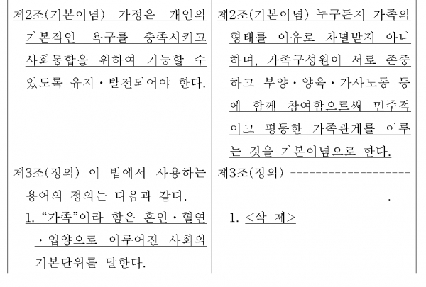이달 초 민주당 남인순 의원은 현행 <건강가정기본법>에서 ‘건강 가정’이란 표현과 전통적 가족의 정의를 삭제한 개정안을 대표발의했다.